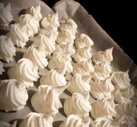 Beziki 2 białka ( w temperaturze pokojowej ) 120 g drobnego cukru do wypieków odrobinę soli odrobinę soku z cytryny Rozgrzewamy piekarnik do 110 stopni Celsjusza. Ubijamy białka z odrobiną soli. Bardzo powoli dodajemy łyżką cukier. Gdy ten się rozpuści, dodajemy odrobinę soku z cytryny. Przygotowujemy blachę wyłożoną papierem […]