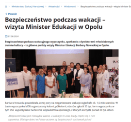 W dniu 7.08.2024r. odbyło się spotkanie Zarządu Polskiego Stowarzyszenia Wychowania Pozaszkolnego z Panią Minister Barbarą Nowacką w Opolu. Poniżej załączamy linki do artykułów na ten temat, zapraszamy do przeczytania: https://www.gov.pl/web/edukacja/bezpieczenstwo-podczas-wakacji–wizyta-minister-edukacji-w-opolu https://www.facebook.com/BarbaraANowacka https://czasnaopole.pl/minister-edukacji-narodowej-z-wizyta-w-opolu-wideo/ https://nto.pl/dyrektorzy-mlodziezowych-domow-kultury-i-palacow-mlodziezy-z-calej-polski-spotkali-sie-w-opolu-z-minister-edukacji/ar/c5-18727527 https://www.facebook.com/PolskieStowarzyszenieWychowaniaPozaszkolnego/?locale=pl_PL