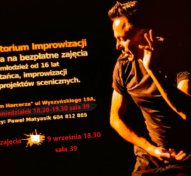 Halo Zielona Góra! MCKiE „Dom Harcerza” Zielona Góra serdecznie zaprasza młodzież od 16 roku życia na jedyne w swoim rodzaju bezpłatne zajęcia z tańca współczesnego i improwizacji z elementami choreografii. Prowadzący: Paweł Matyasik. Zajęcia w każdy poniedziałek 18.30- 19.30 sala 39 MCKiE „Dom Harcerza” Zielona Góra ul Wyszyńskiego 19 A. […]