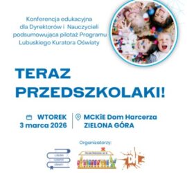 W dniu 03.03.2026 r. w MCKiE „Dom Harcerza” odbyła się konferencja podsumowująca pilotaż Programu Lubuskiego Kuratora Oświaty „Teraz Przedszkolaki” realizowanego wraz z Miejskim Przedszkolem nr 18 w Zielonej Górze. Więcej informacji na Facebooku Kuratorium Oświaty: https://www.facebook.com/KuratoriumOswiatyGorzow/posts/122246996732247810?ref=embed_post