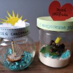 Taką prostą dekorację wykonasz w domu, wykorzystując małe słoiczki, kolorowy papier, pisaki i różne drobiazgi .