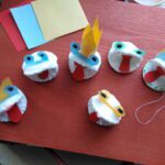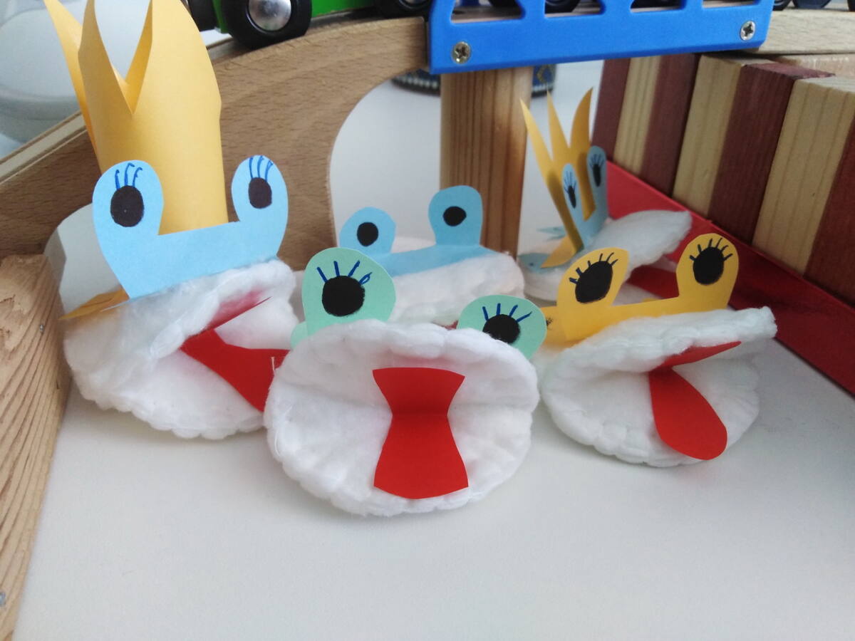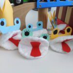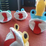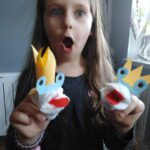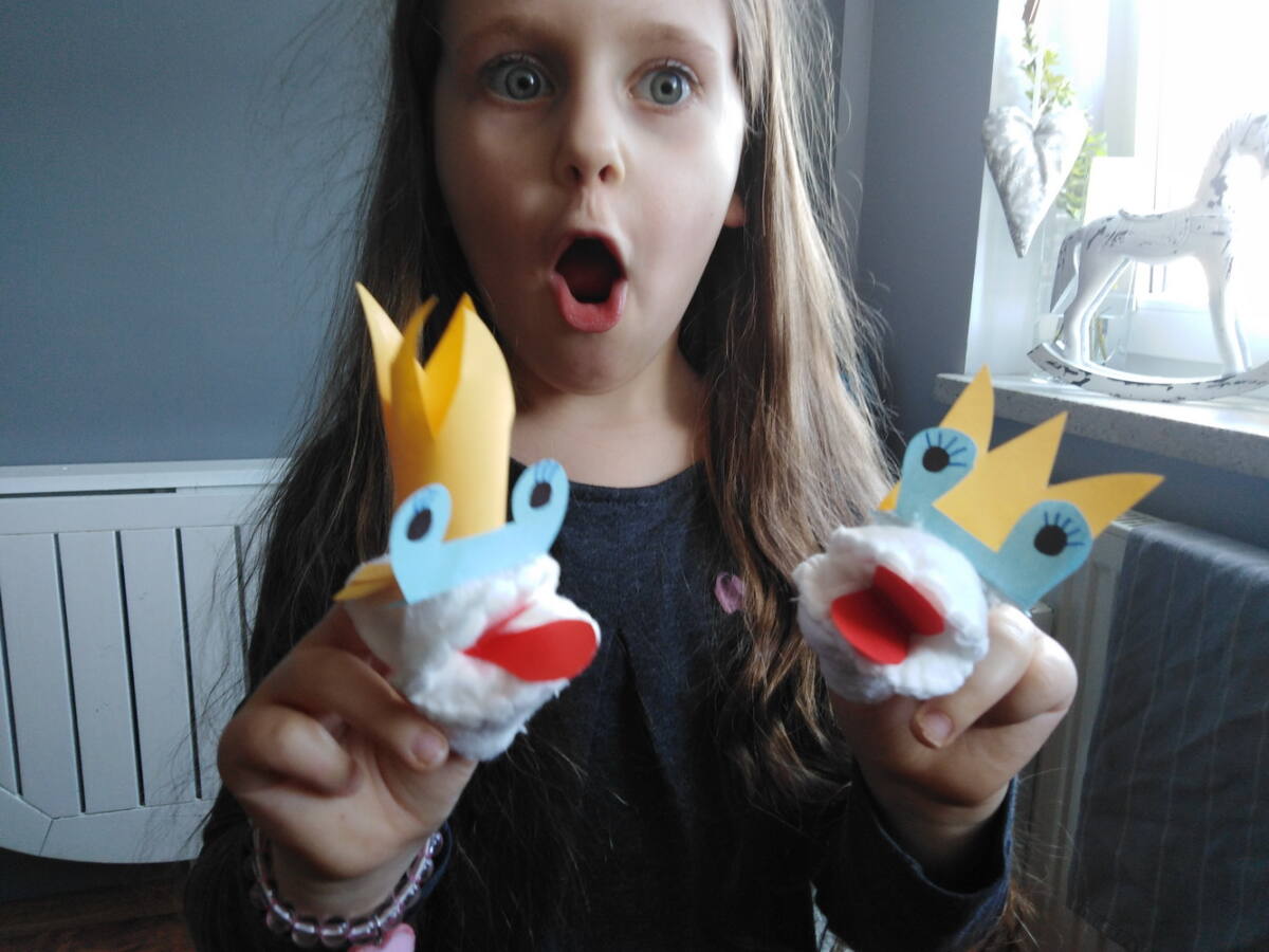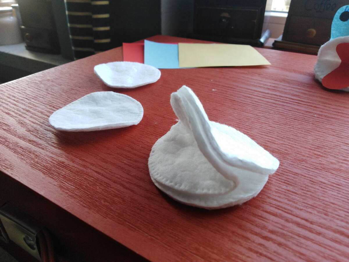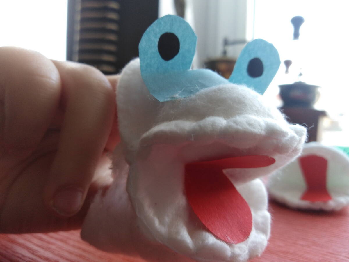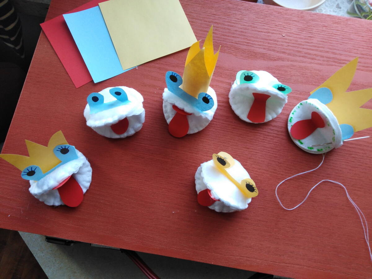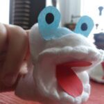 MAPETY Z PŁATKÓW HIGIENICZNYCH Do wykonania mapetów potrzebujesz: płatki higieniczne, nitkę, igłę, nożyczki, kolorowe kartki i pisak. Płatek kosmetyczny zginamy na pół. Do połówek przykładamy całe płatki i przyszywamy na okrętkę, jak na zdjęciu. Poproście rodziców o pomoc. Z kartek kolorowych wycinamy język, oczy, elementy dekoracyjne z zakładką i przyklejamy do płatków. Mapet gotowy. Możesz teraz wymyślić mały spektakl dla rodziców. Powodzenia