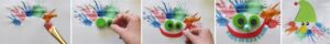 To propozycja dla najmłodszych. Na kartce zrób kolorowe kleksy farbami. Poczekaj aż wyschną i w tym czasie przygotuj sobie różne elementy: nakrętki, kolorowy papier, ścinki, guziczki. Niech twoja wyobraźnia podpowie co możesz stworzyć z tych kleksów. Przykładaj przygotowane wcześniej elementy i zrób na przykład wesołą postać. Potem możesz usunąć te elementy i zacząć zabawę jeszcze raz. Możesz też odwrócić kartkę z kleksami do góry nogami. Ciekawe co jeszcze stworzysz?