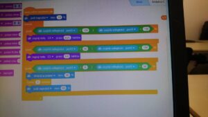 Na poniższym zdjęciu widać program do mBota, zastanówcie się co zrobi nasz robot jak wgramy mu zadanie.