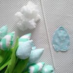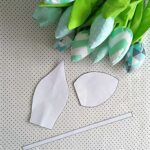 Odrysowujemy za pomocą szablonów kształty na tkaninie…dodajemy około 0,5 cm zapasu z każdej strony po czym wycinamy po tych liniach elementy. Należy pamiętać o tym aby każdy element miał dwie strony- lewą i prawą. Wszystkie elementy przeszywamy na maszynie do szycia ściegiem prostym po lewej stronie po czym wywracamy na prawą stronę. Warto przeprasować wszystkie elementy. Pąk wypełniamy wypełniaczem lub watą, w łodydze umieszczamy patyczek lub rurkę. Pąk ręcznie zeszywamy tak aby ściągnąć dół, pamiętamy o umieszczeniu łodygi. Na koniec zszywamy liść owijając go wokół łodygi. Jeśli ktoś będzie potrzebował pomocy śmiało odpowiem na pytania w wiadomości prywatnej.