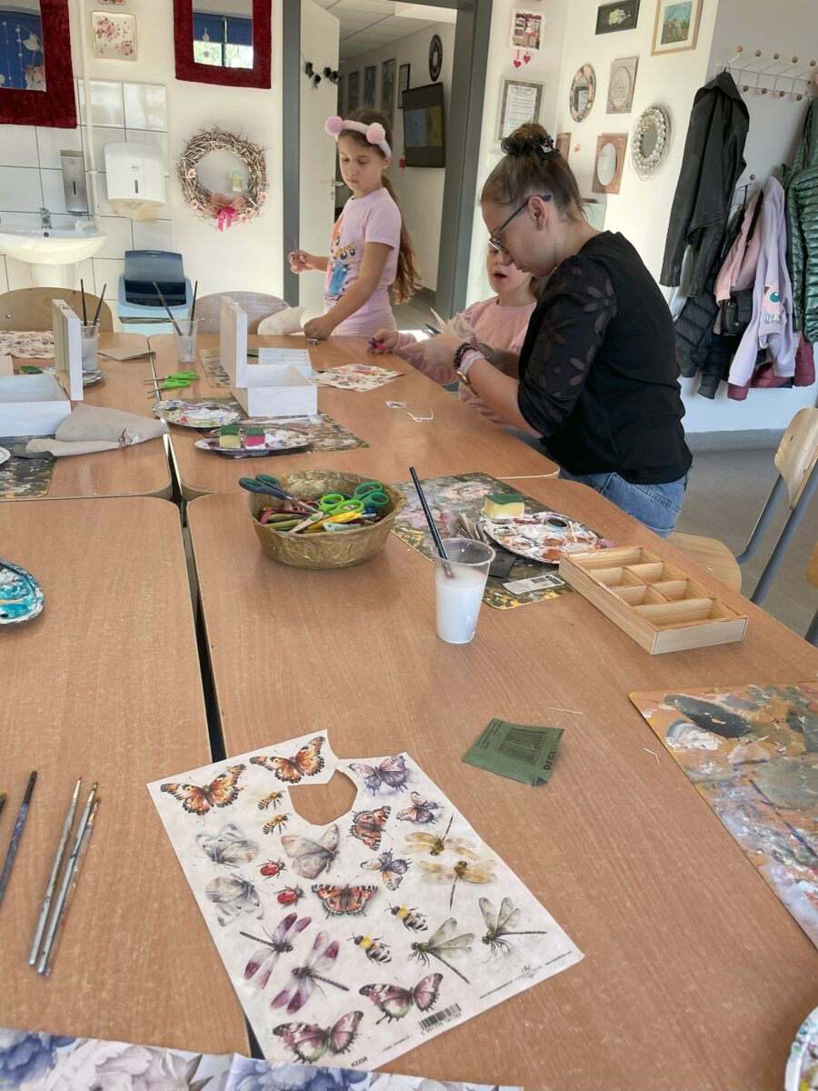 W sobotę 27.09.2025 r. w "Domu Harcerza" odbyły się warsztaty integracyjne i dekoracyjne dla rodzin. Dzieci wraz z rodzicami miały okazję spotkać się w pracowni sztuki dekoracyjnej i spędzić twórczo czas ozdabiając szkatułki z lusterkiem. Tym razem techniką dekoracyjną była technika decoupage, gdzie uczestnicy mieli okazję wykorzystać papier ryżowy z ciekawymi, roślinnymi motywami. Powstały piękne dzieła. Spotkanie poprowadziła Pani Agnieszka Filar.