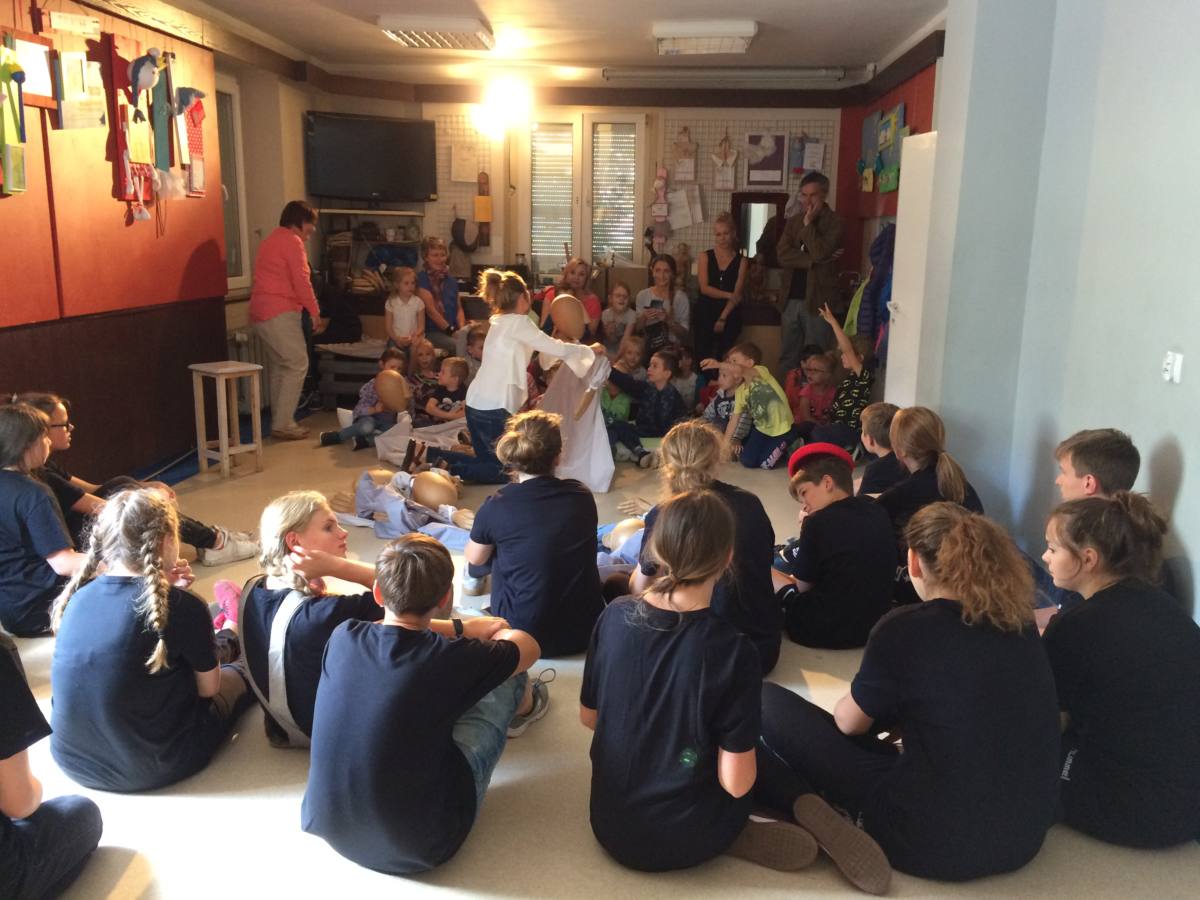 teatralnej. Celem projektu była integracja młodzieży polskiej i niemieckiej we wspólnych działaniach, komunikowaniu się, otwieranie na nowe doświadczenia, jak również nabywanie nowych umiejętności. Młodzież poznała techniki wykonania lalek teatralnych, rzeźby w styrodurze, oklejanie form przestrzennych masą papierową, tworzenie małych form za pomocą masy plastycznej, proste projektowanie stroju, szycie na maszynie, animacja lalek i wspólne tworzenie spektaklu. Dodatkowymi atrakcjami było wspólne spotkanie i gra w kręgielni, odwiedzenie Centrum Nauki Keplera i projekcja filmu, obejrzenie wystawy prac plastycznych w Instytucie Sztuk Wizualnych w Zielonej Górze, jak również spacer po Zielonej Górze.