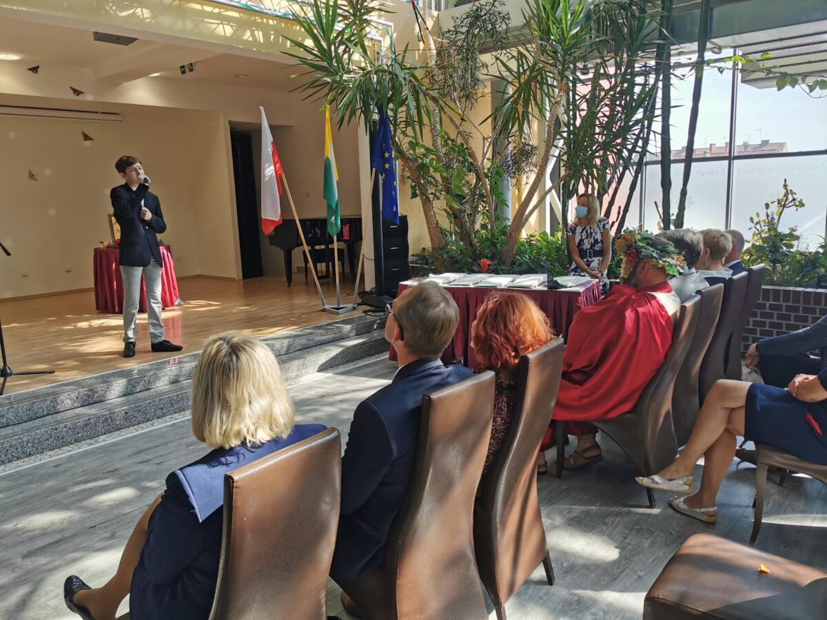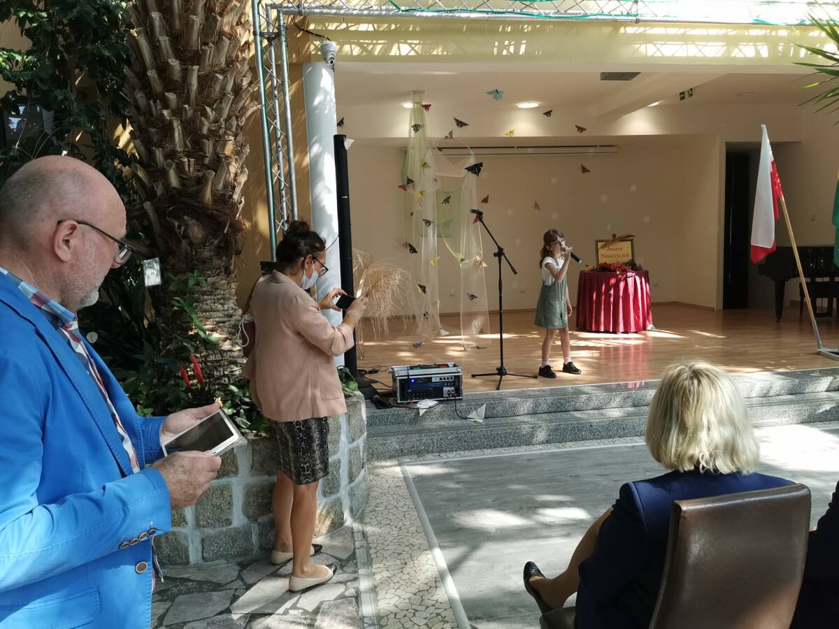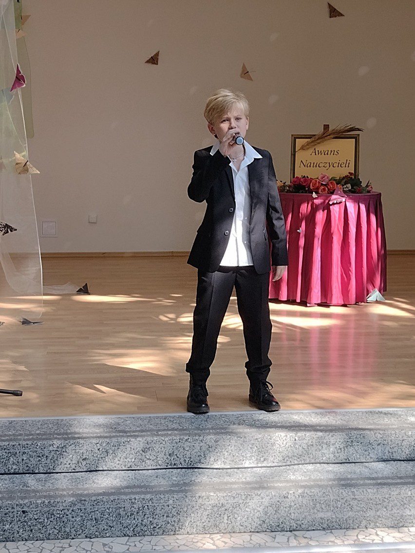 Uroczystość rozpoczęła się występem artystycznym naszych wokalistów ze Studia Piosenki „Rezonans”, przygotowanych przez nauczycieli Elżbietę Sawicką i Ireneusza Sawickiego.