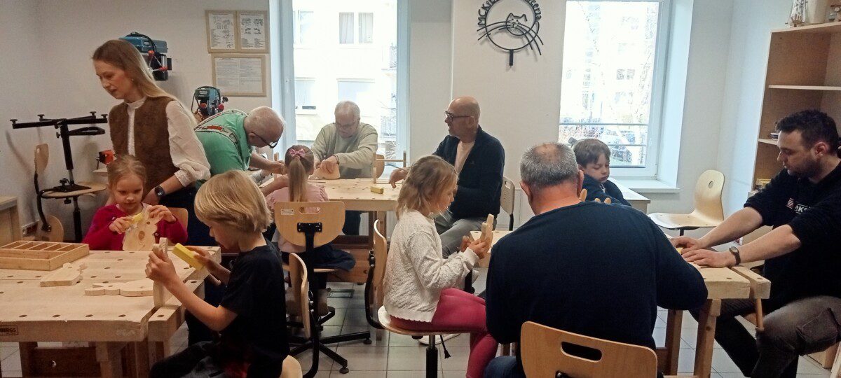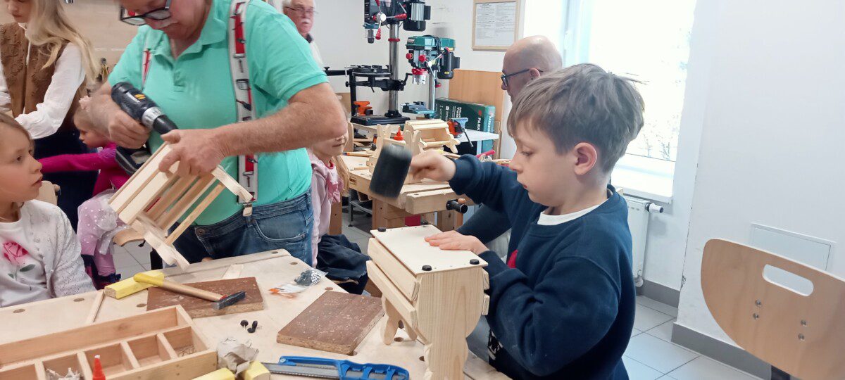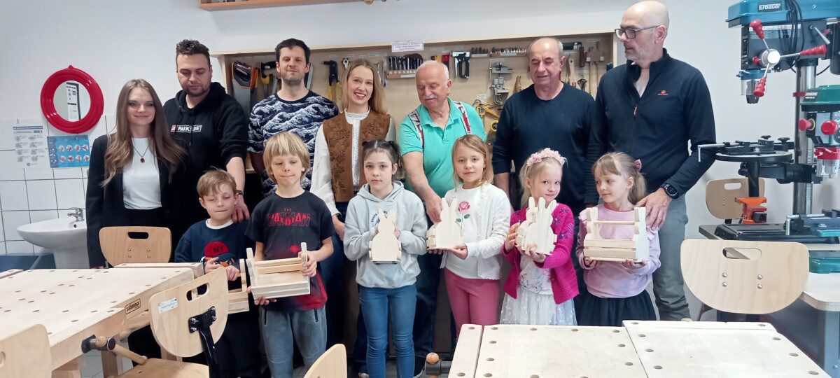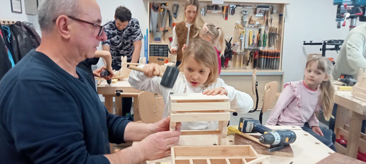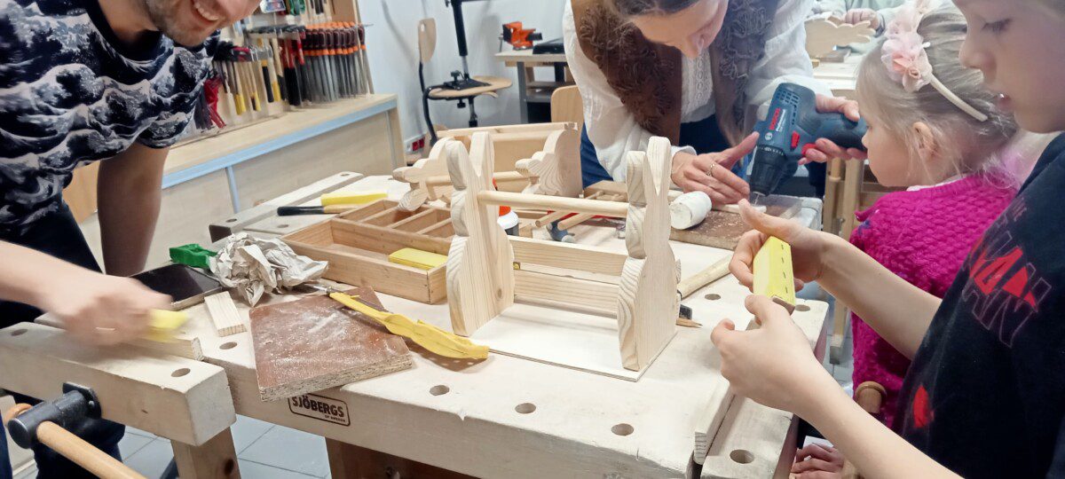 Za nami kolejne rodzinne warsztaty z majsterkowania połączone z zabawami w języku angielskim, które poprowadzili Pan Kaziu i Pani Ola. Tym razem warsztaty przebiegały w atmosferze wiosenno-świątecznej.