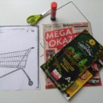 – kolorowe sklepowe gazetki ze zdjęciami produktów spożywczych.